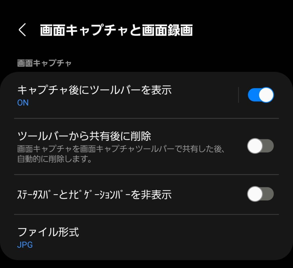 設定アプリを開き、[便利な機能] → [画面キャプチャと画面録画] → [ファイル形式]