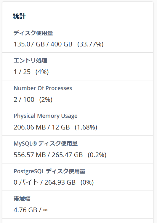 そして以下はcPanelにログインした時に表示される統計情報なのだが、2022年のアップグレードが反映された状態のようにも見える。