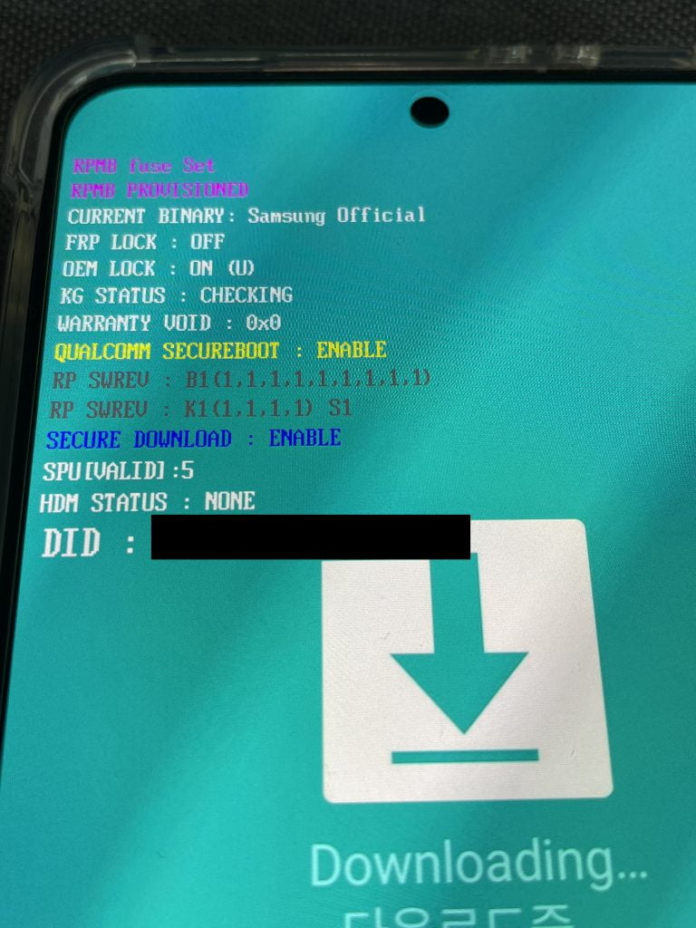 もちろん公式ROMを焼いただけなのでCURRENT BINARYの欄はSamsung Officialだし、WARRANTY VOIDの欄も0x0なので安心。
