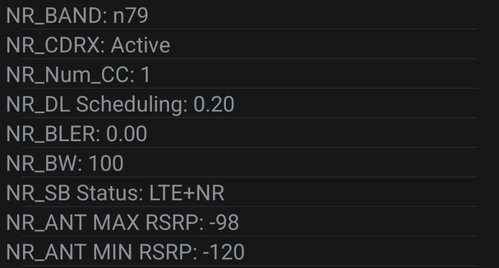 *#0011# でServiceModeを開いて確認するとちゃんとn79を掴めていた。