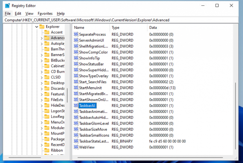 HKEY_CURRENT_USER\Software\Microsoft\Windows\CurrentVersion\Explorer\Advanced