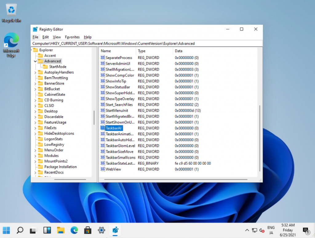 HKEY_CURRENT_USER\Software\Microsoft\Windows\CurrentVersion\Explorer\Advanced